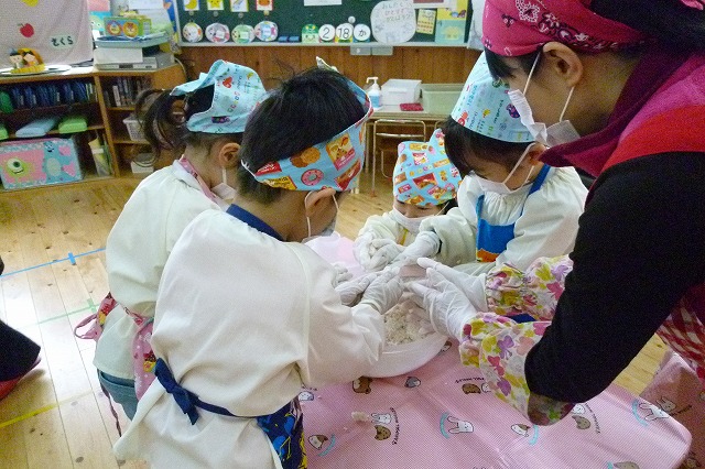 年中さんがみそ作りに挑戦しました!